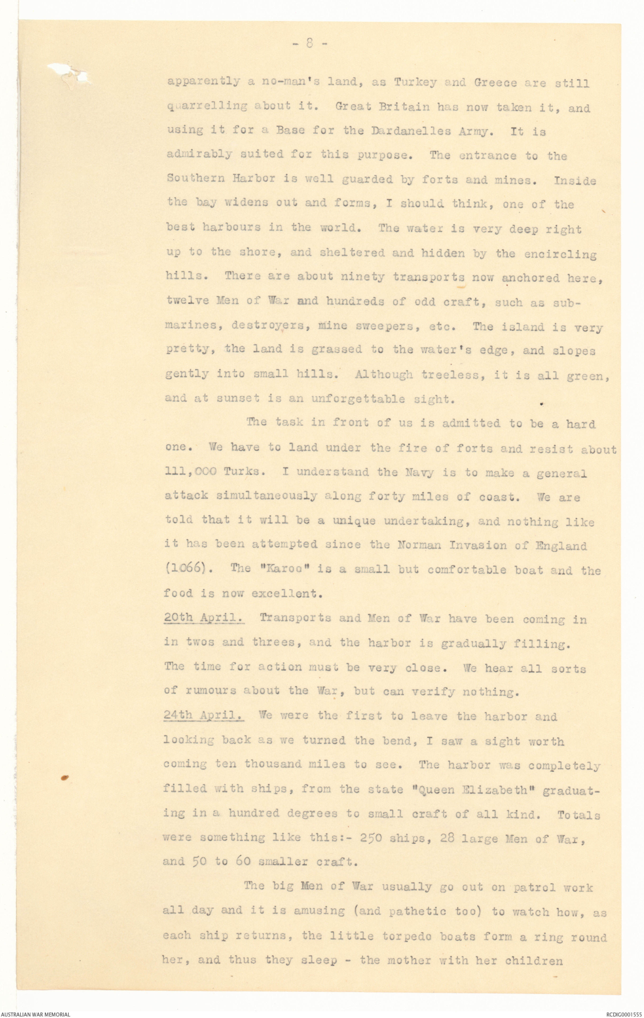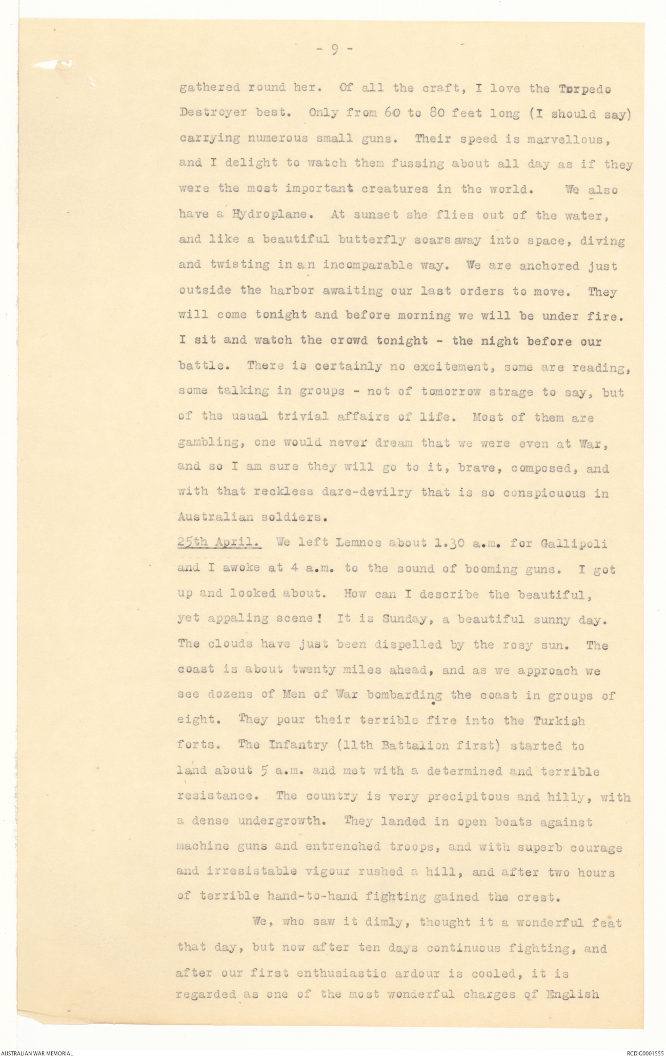 25th April. We left Lemnos about 1.30 a.m. for Gallipoli