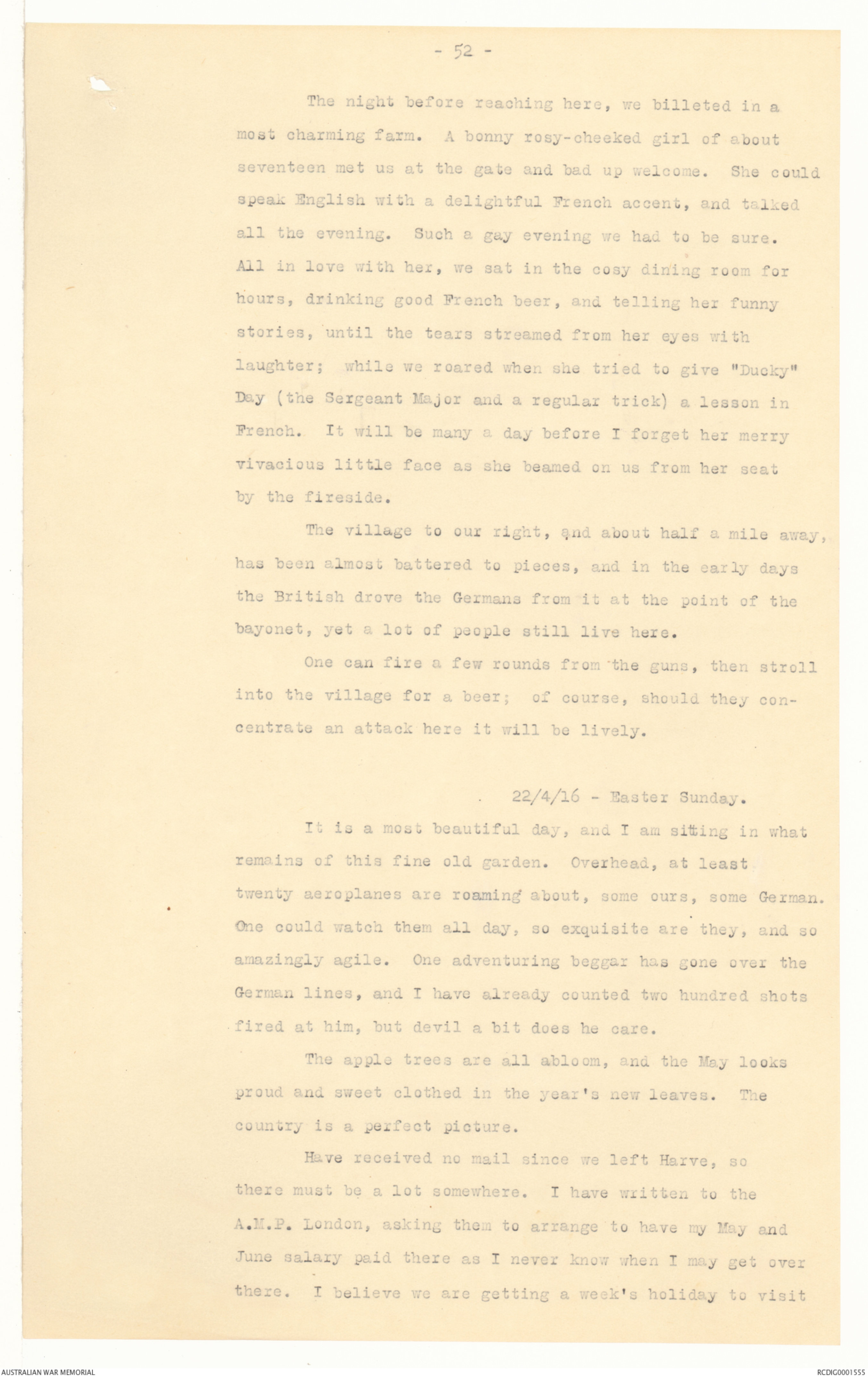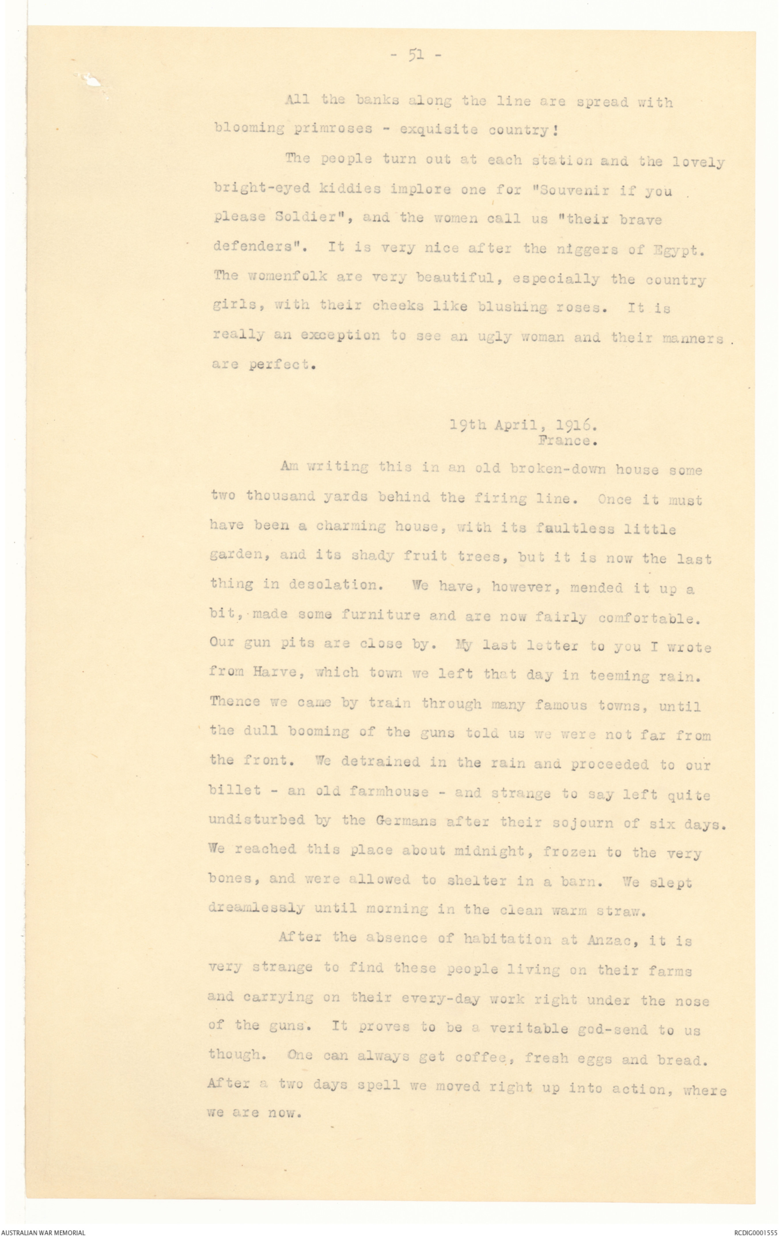 billet - an old farmhouse - and strange to say left quite