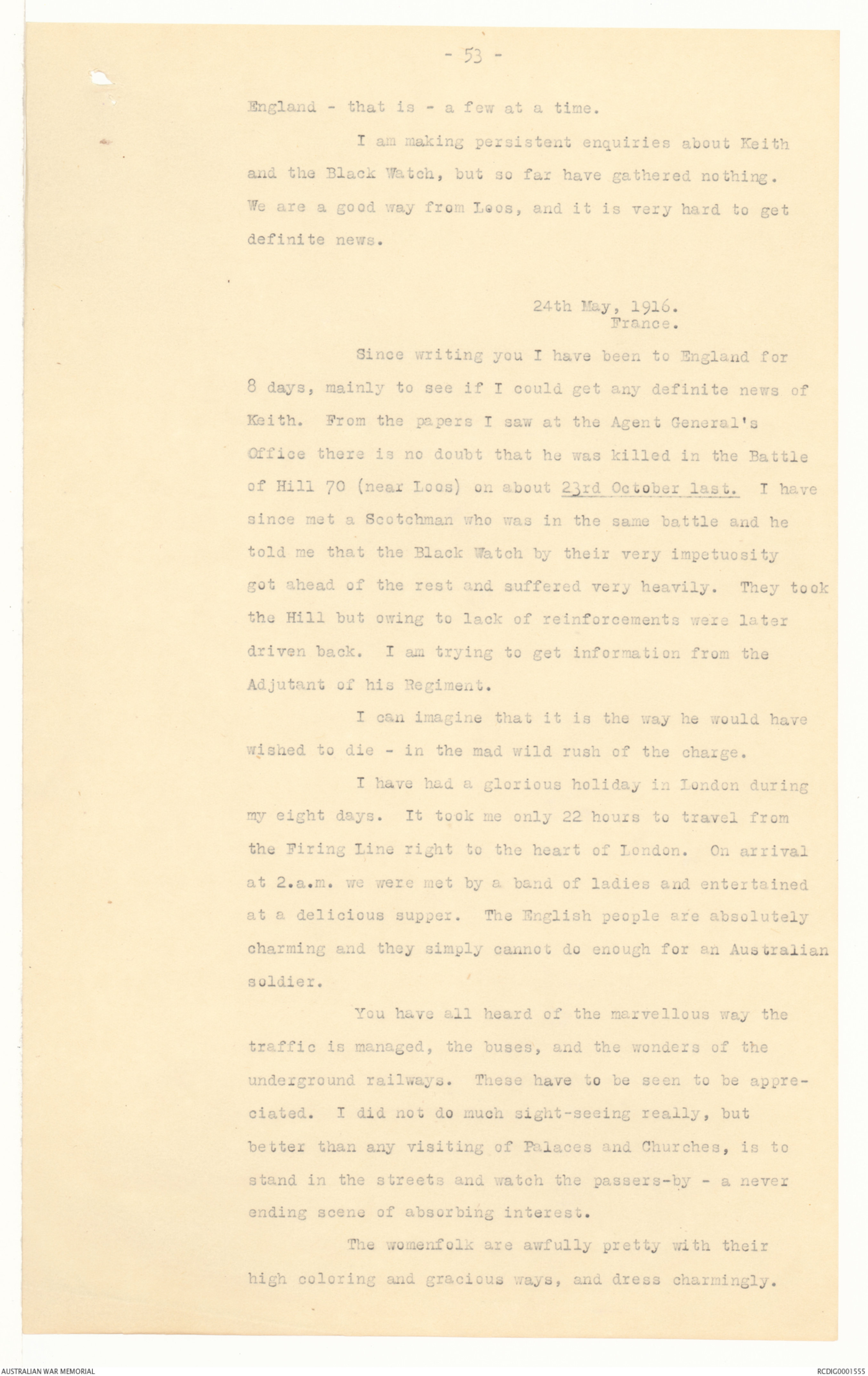 of Hill 70 (near Loos) on about 23rd October last. I have
