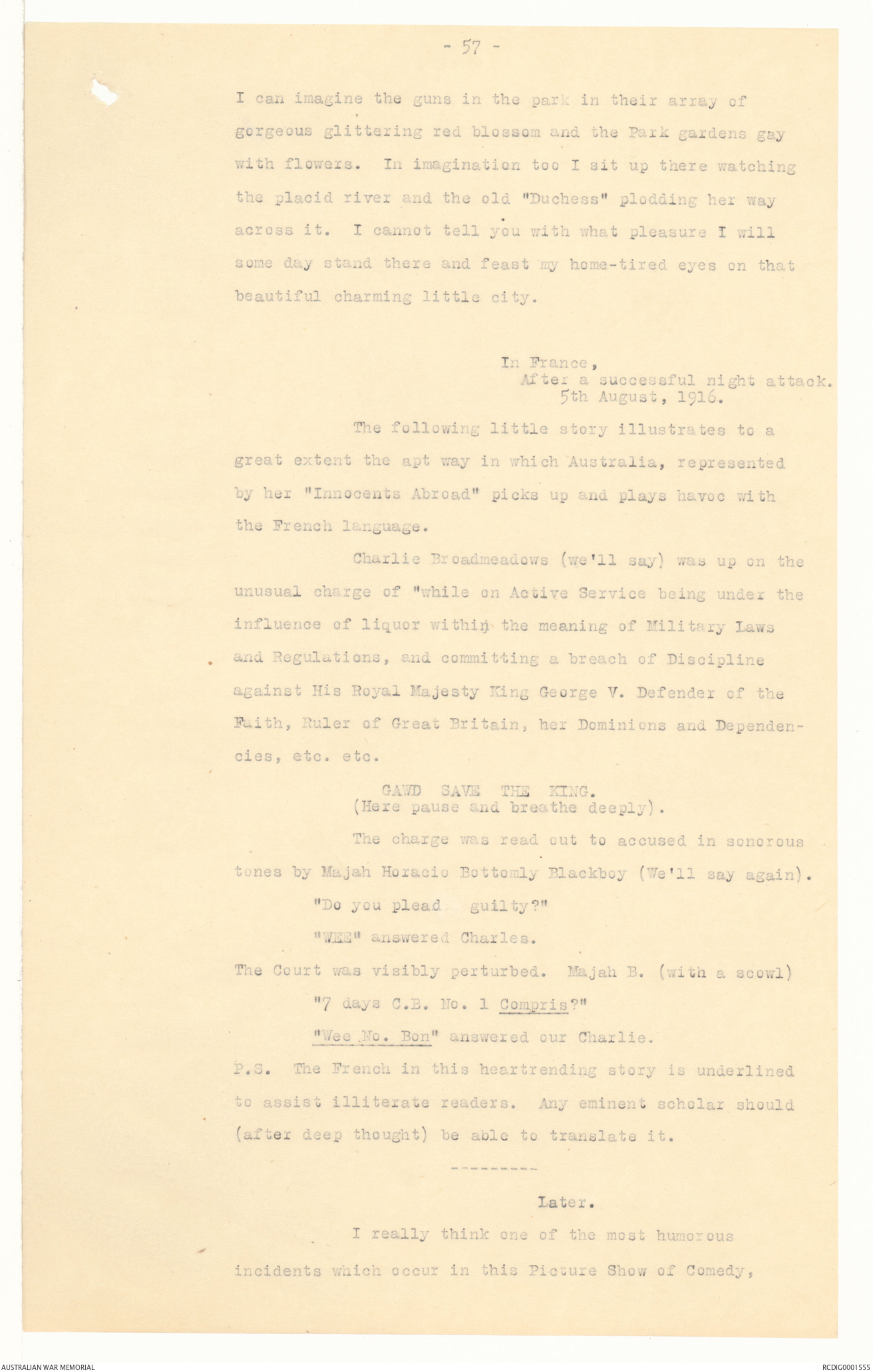 time in a recent attack. Charlie got a "Blighty" wound,