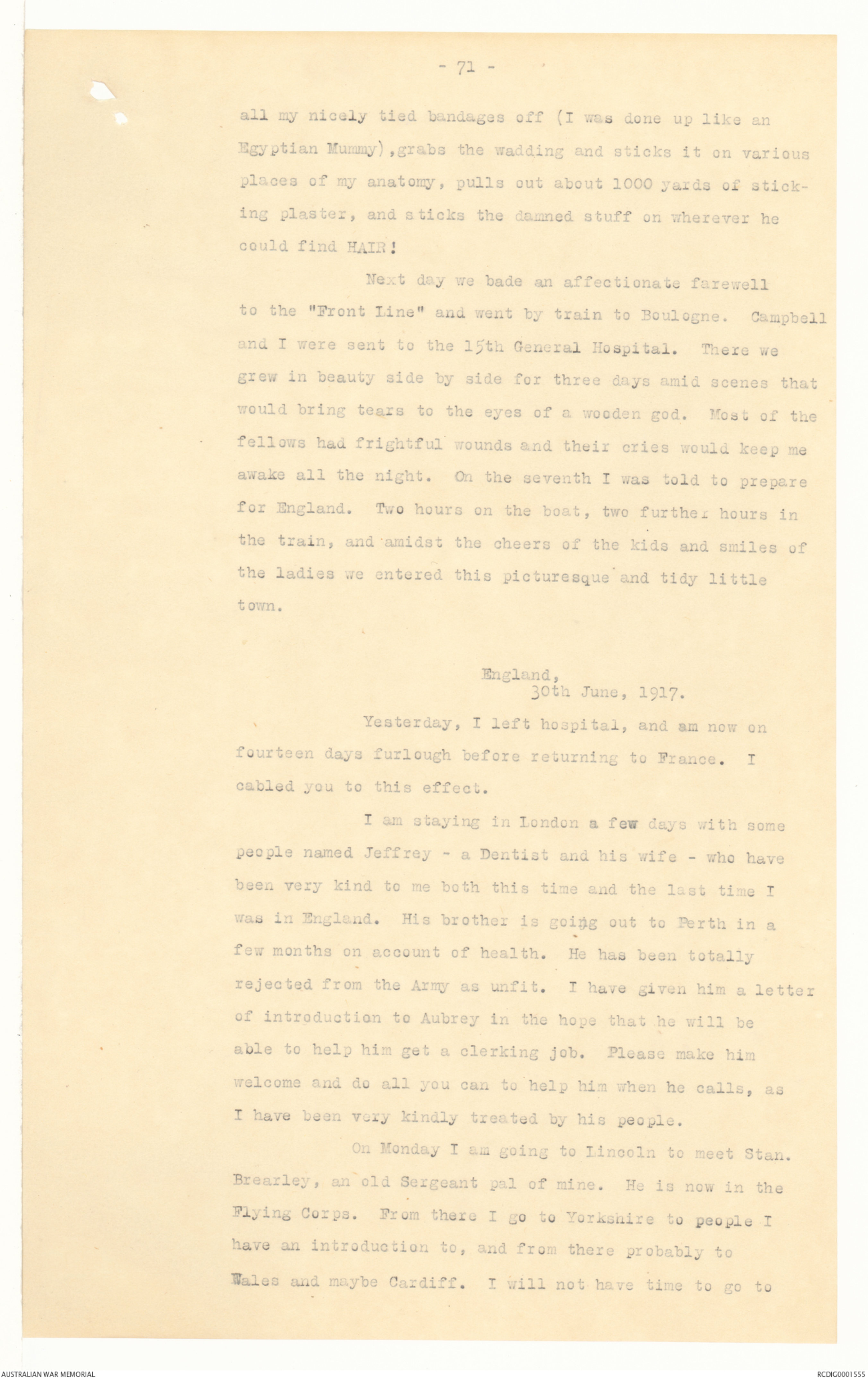 to the "Front Line" and went by train to Boulogne. Campbell