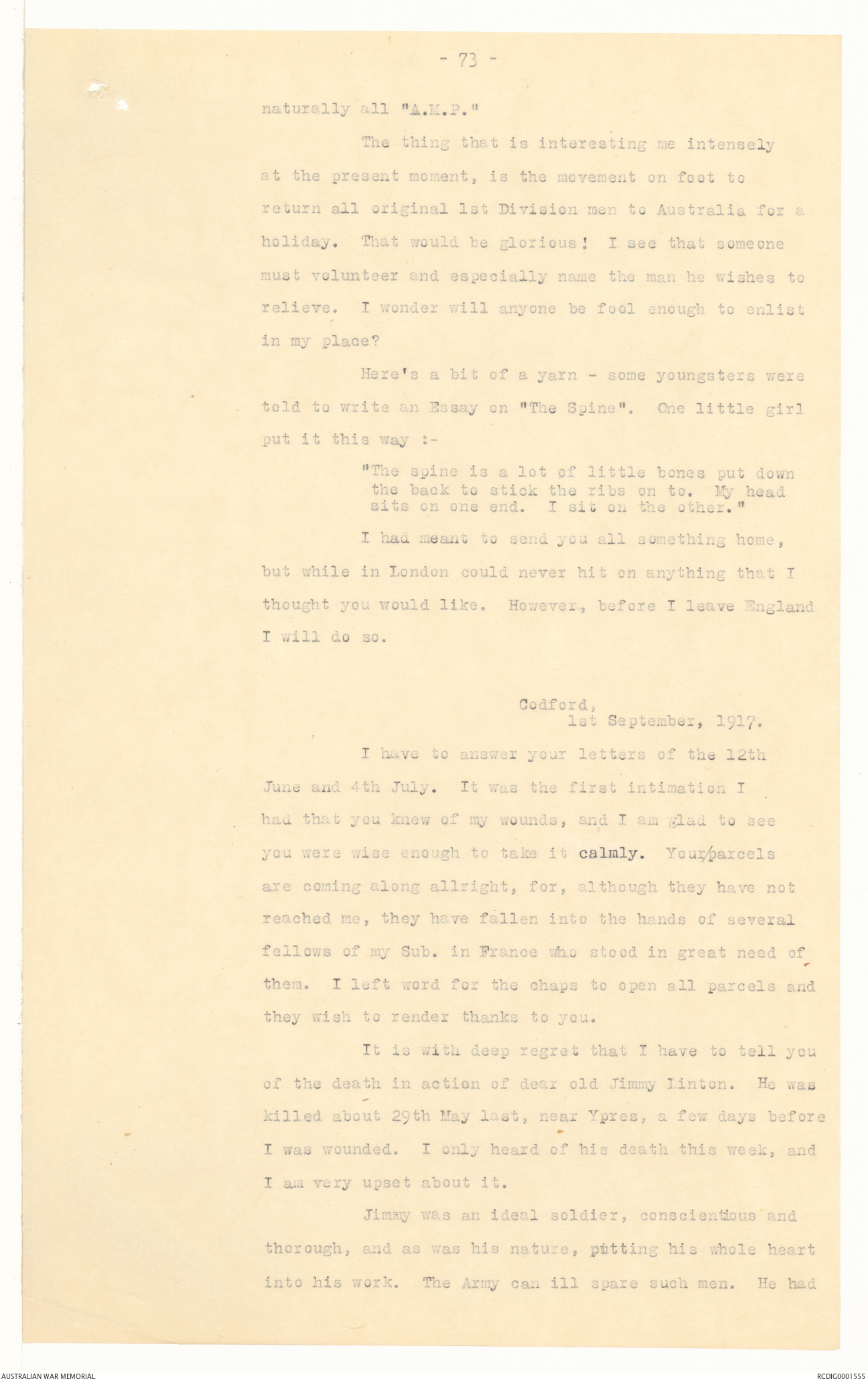 and the A.M.P., and I got the usual tinge of homesickness