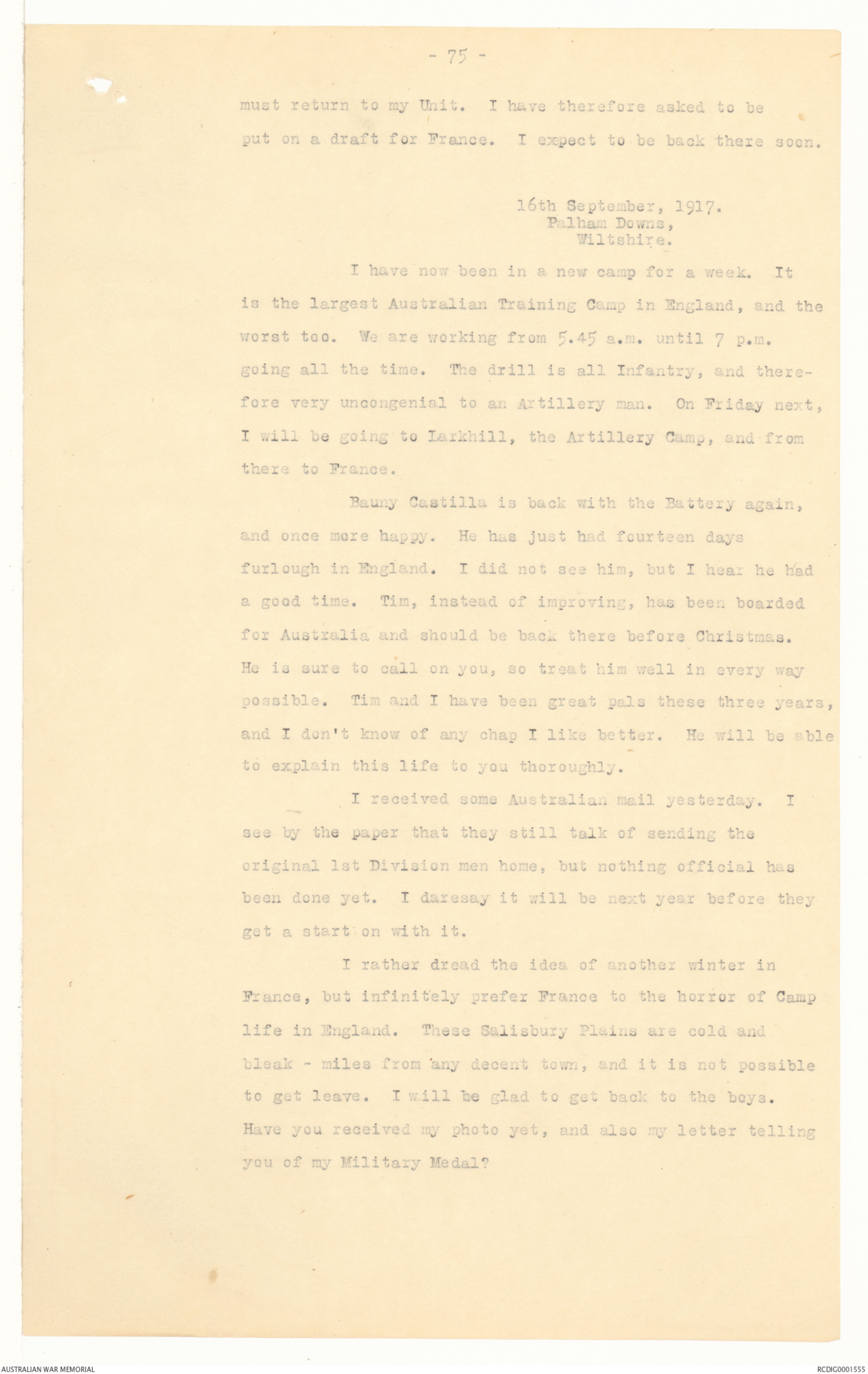 return all original 1st Division men to Australia for a