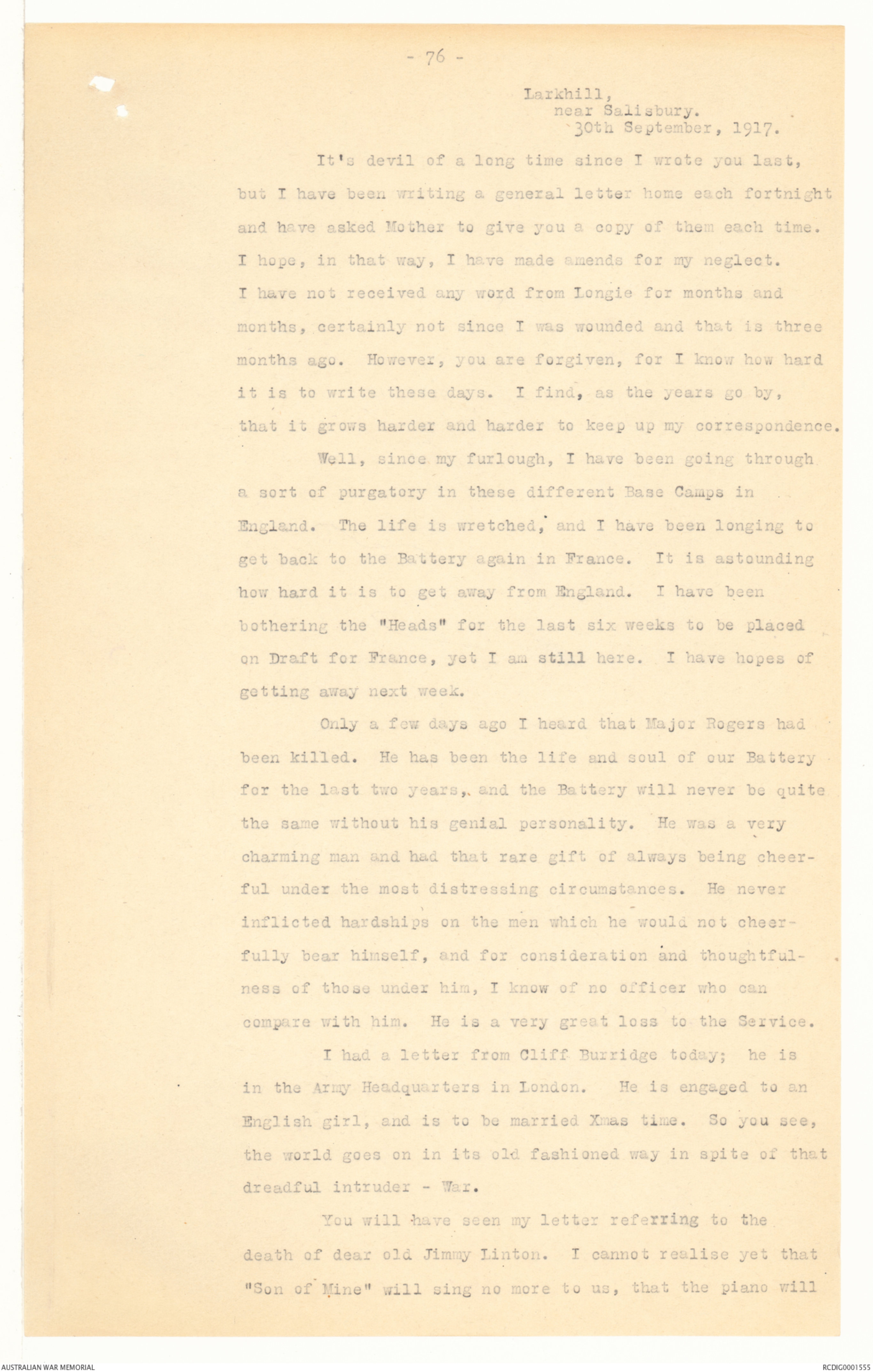 one from Longie, dated 21st September and the last W.A.