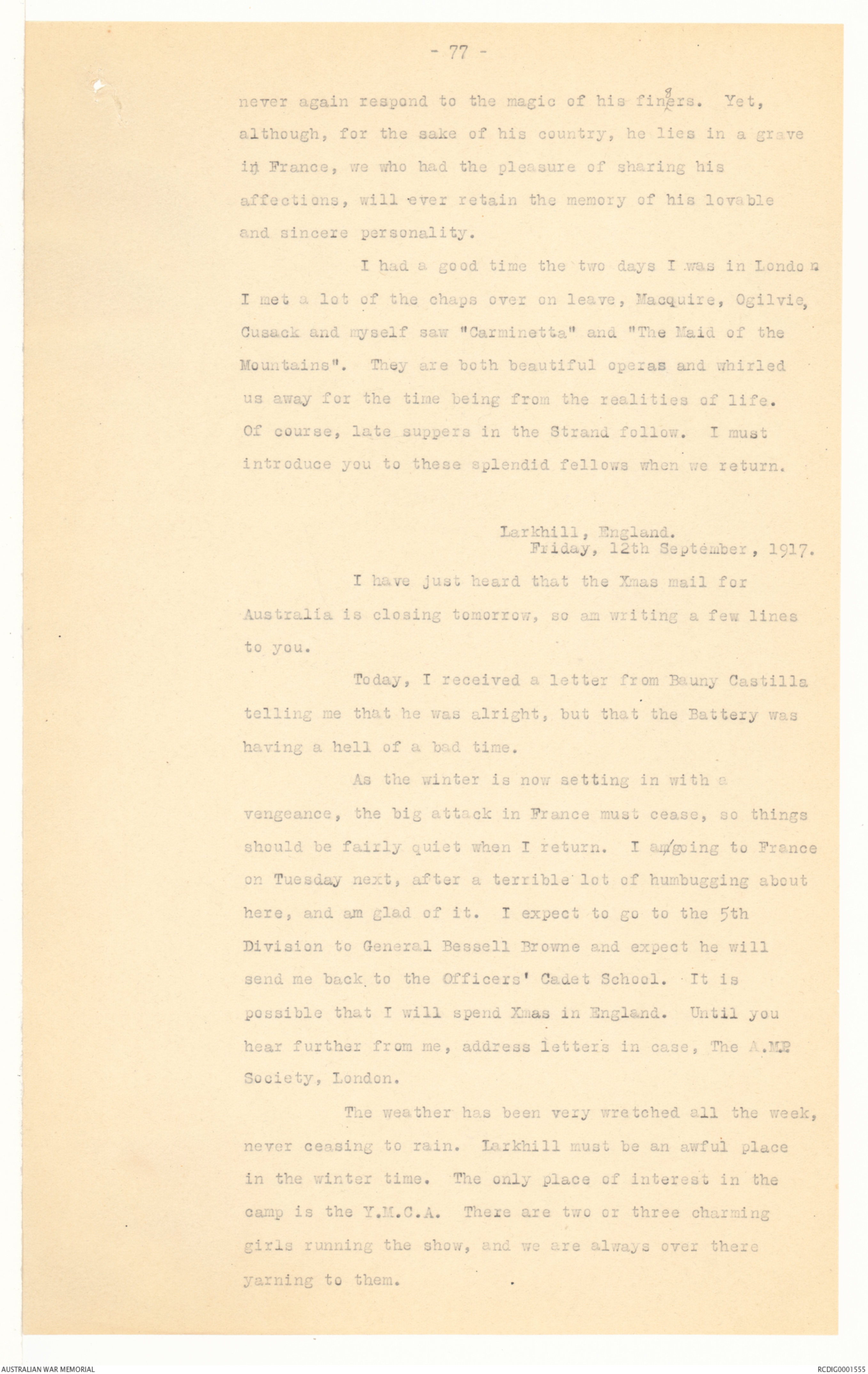 Typescript copies of letters from Hector Roy McLarty, 18 November 1914 to 7 August 1918 - Part 8