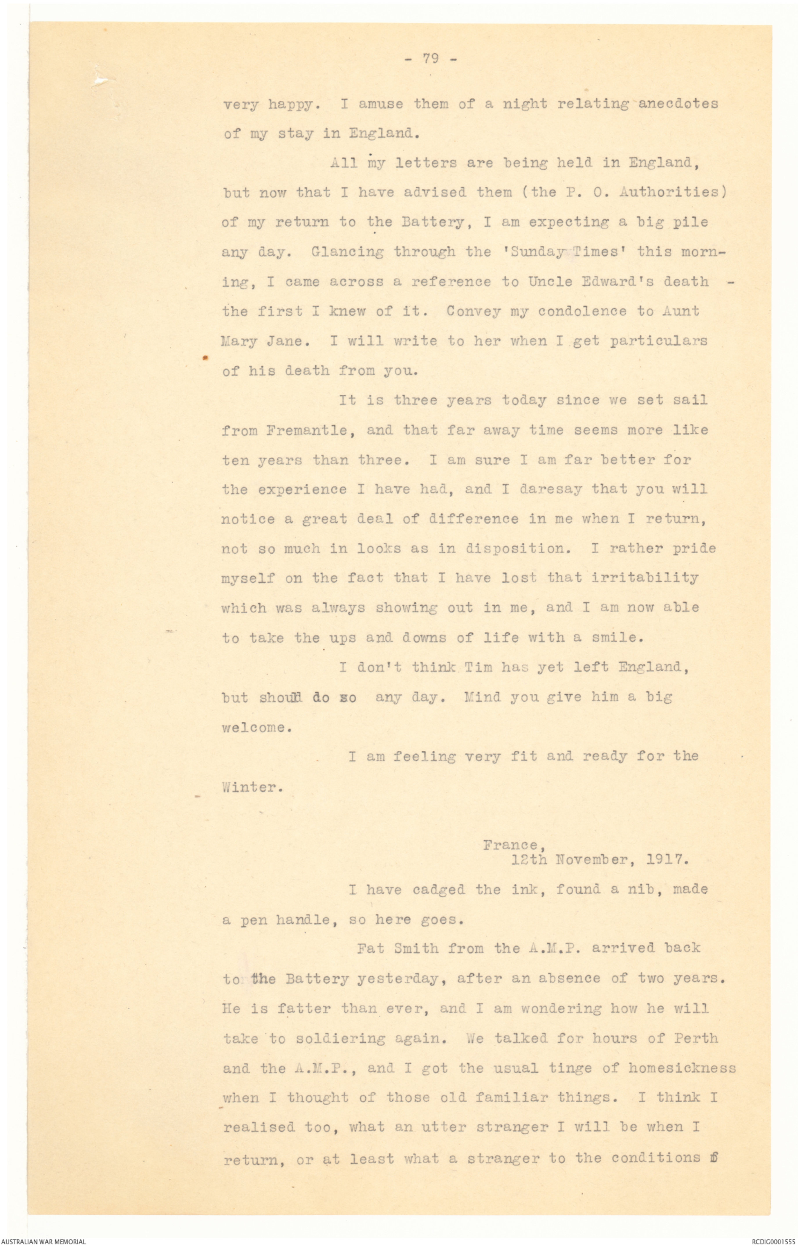 I have received no letters from Australia for
