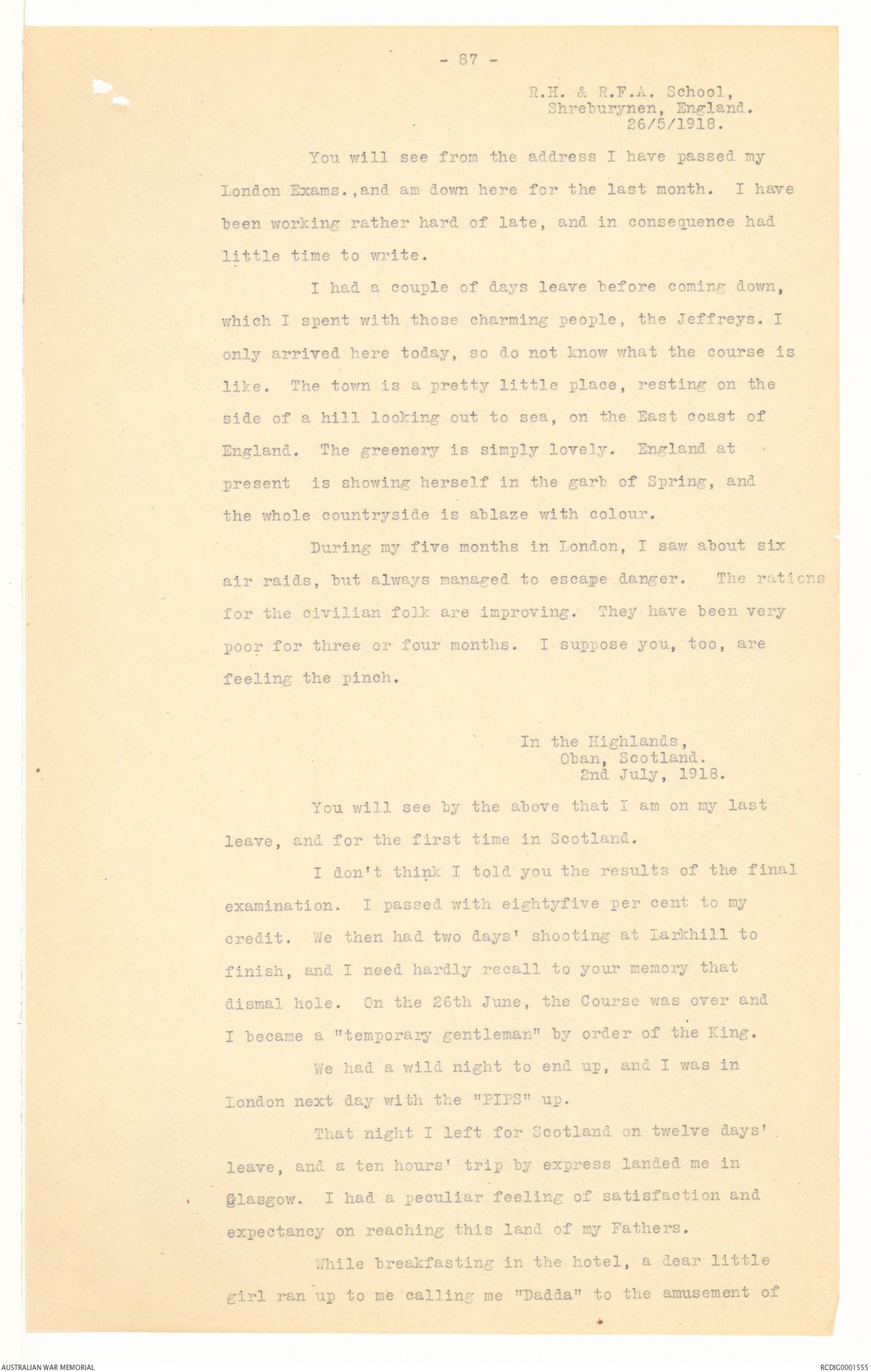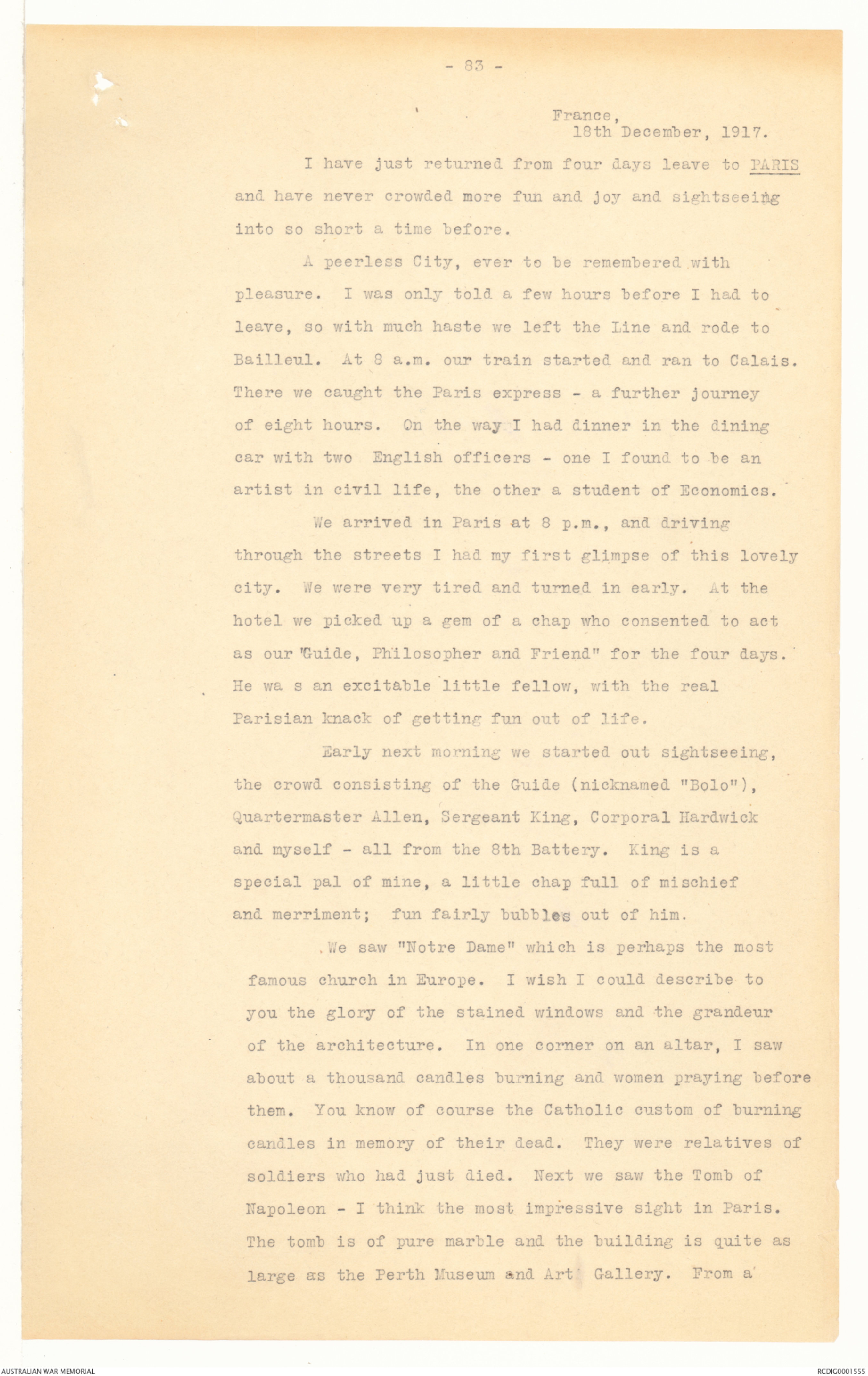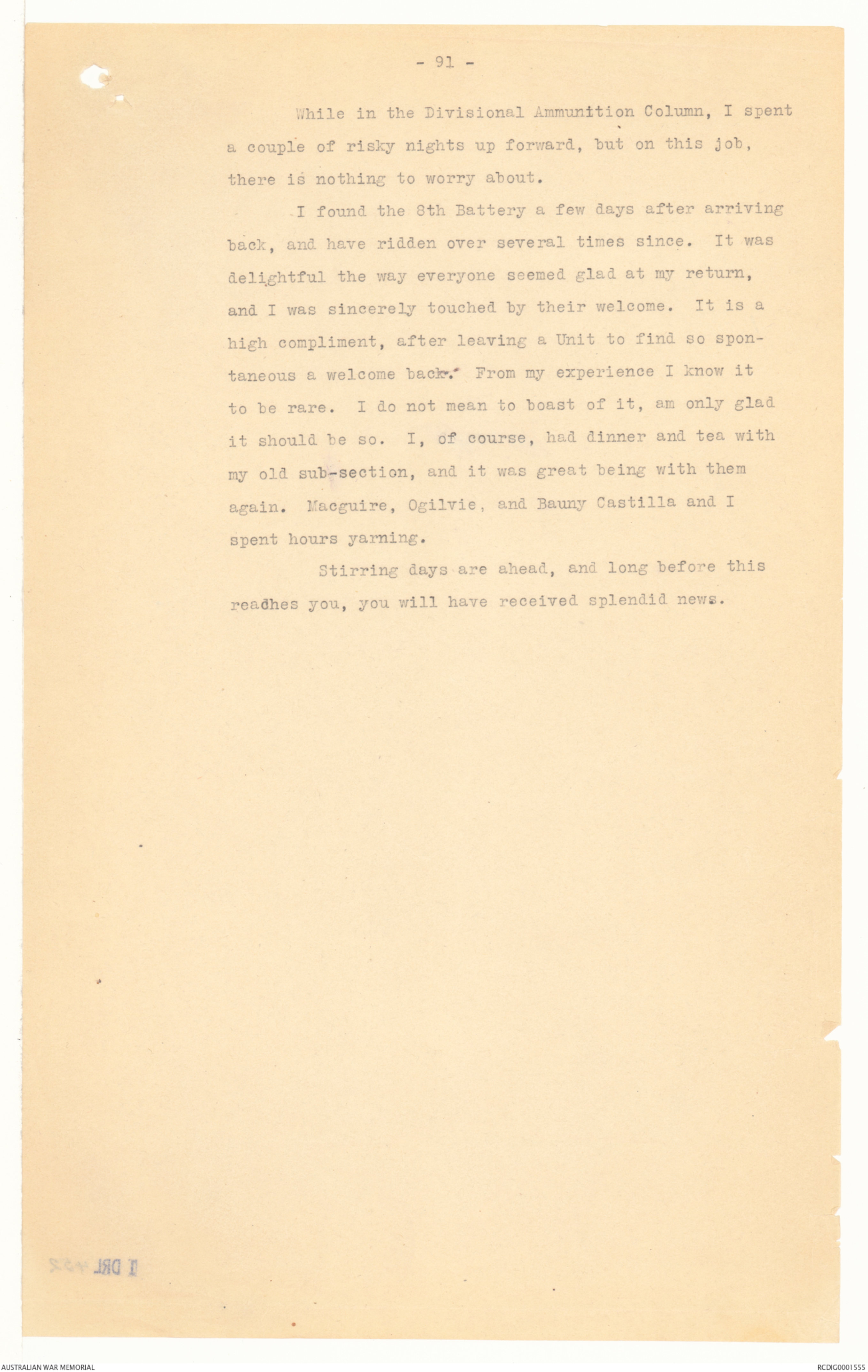 Typescript copies of letters from Hector Roy McLarty, 18 November 1914 to 7 August 1918 - Part 9