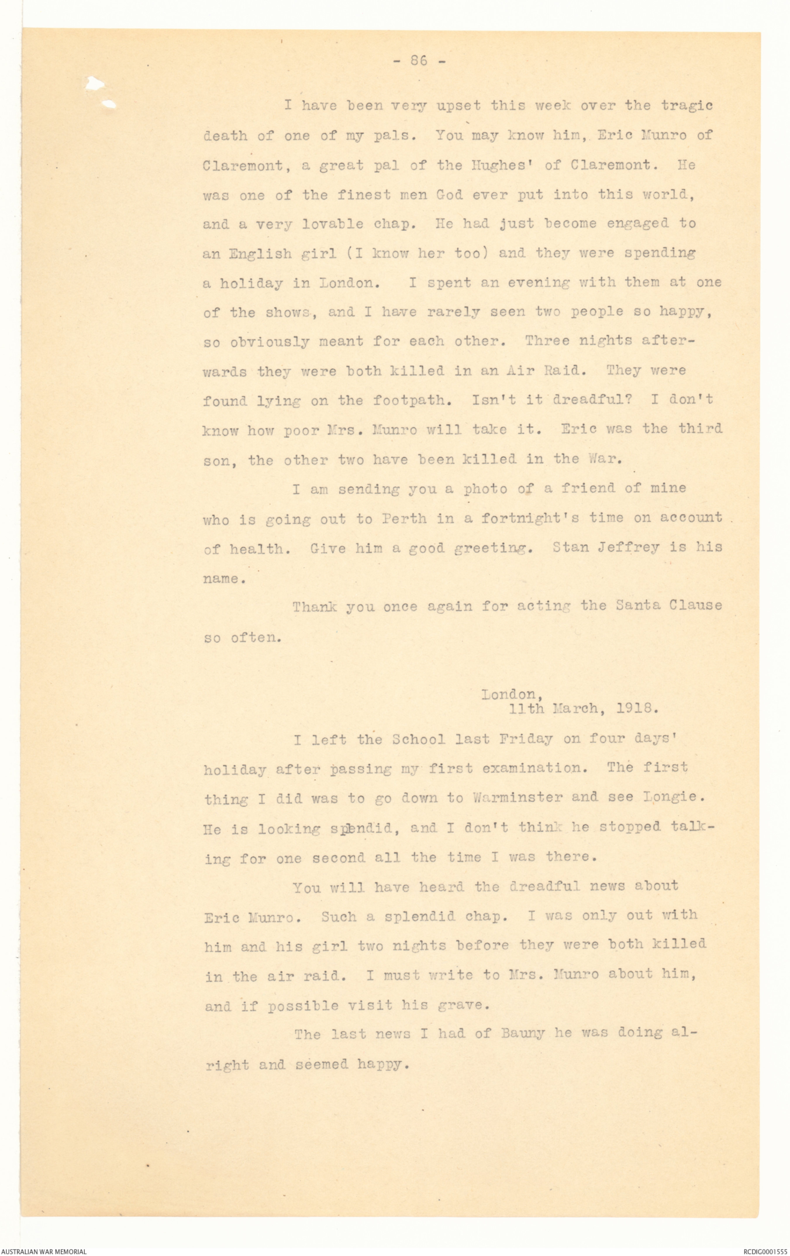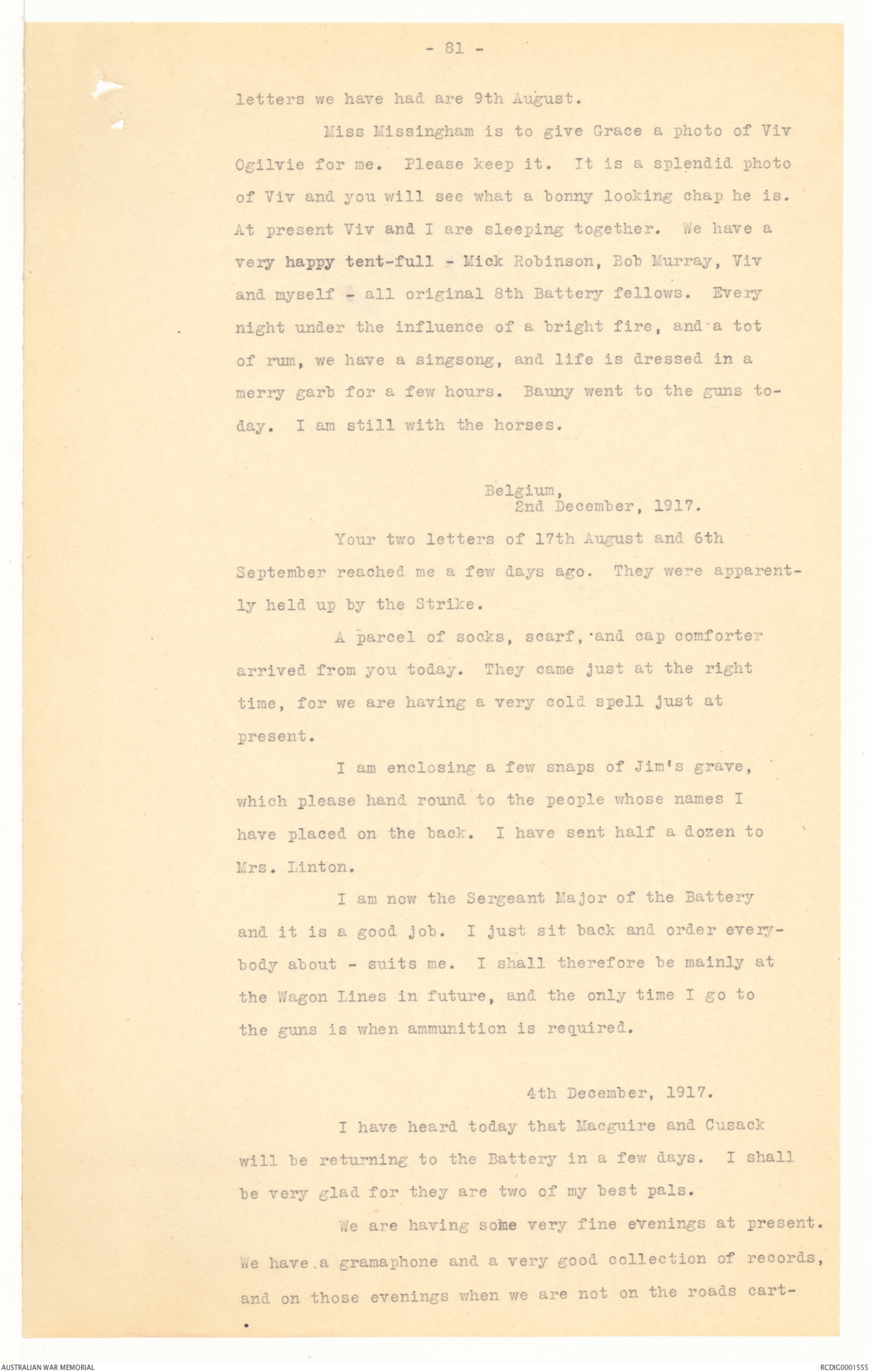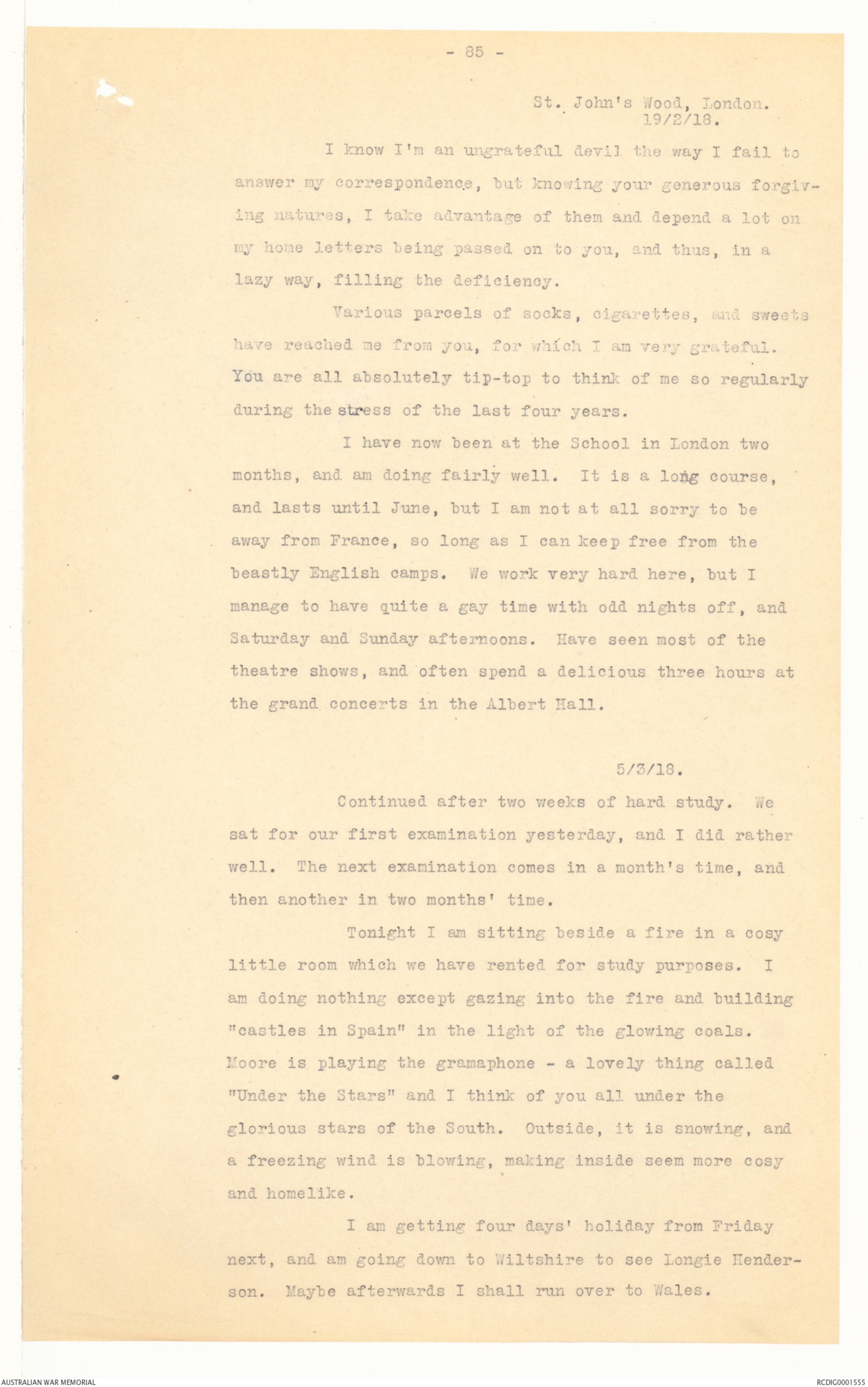 Typescript copies of letters from Hector Roy McLarty, 18 November 1914 to 7 August 1918 - Part 9