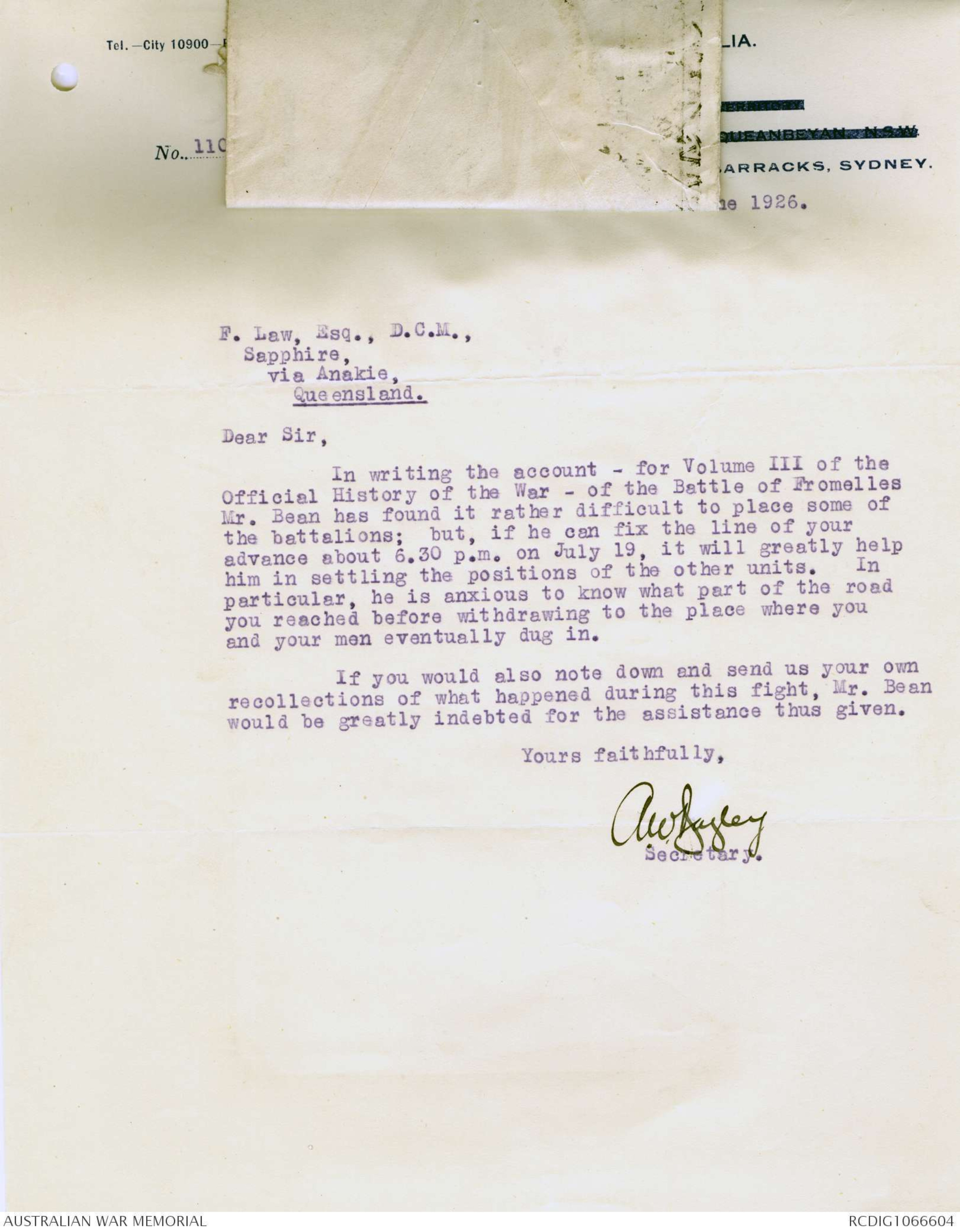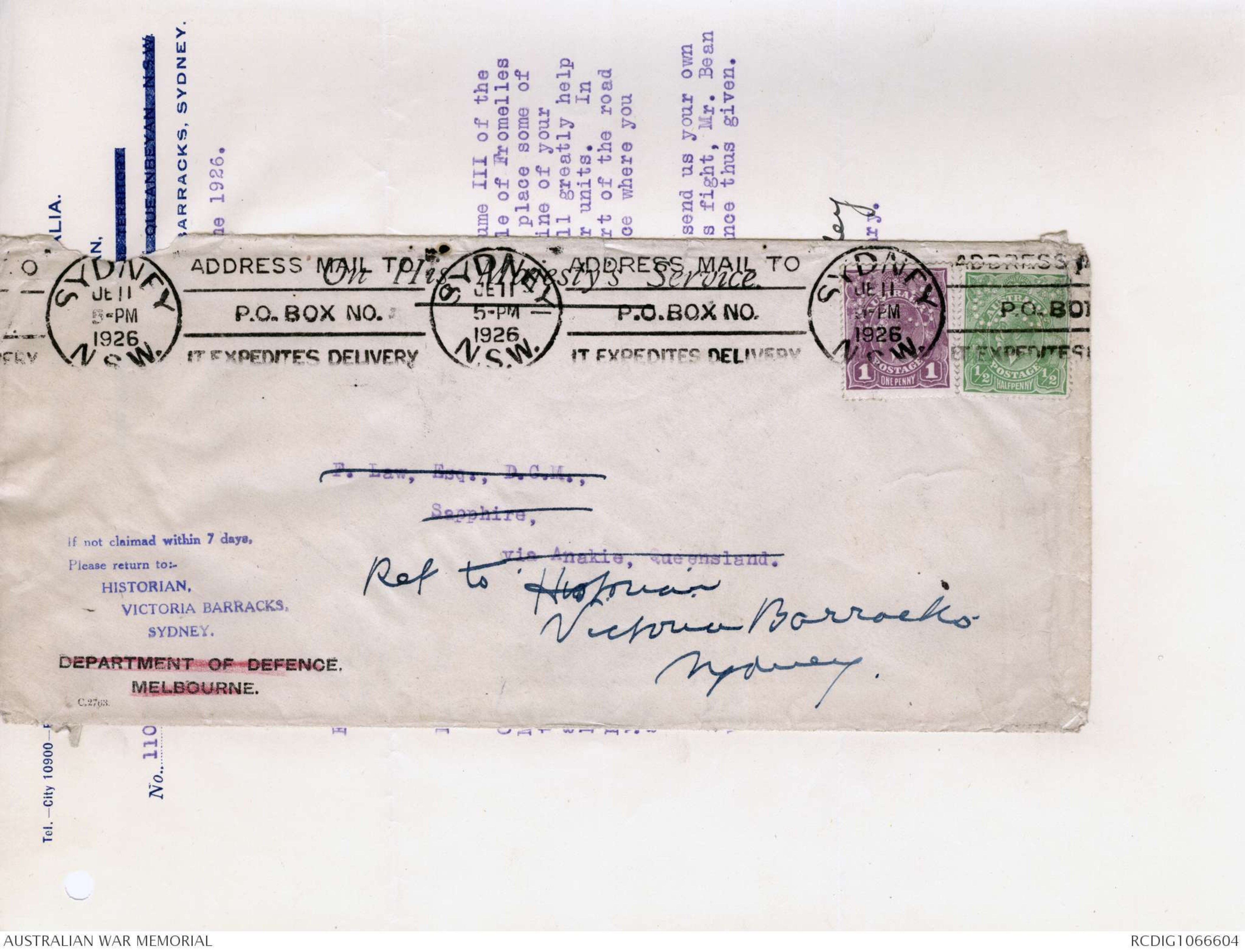 | VICTORIA BARRACKS, | Refer to Historian |