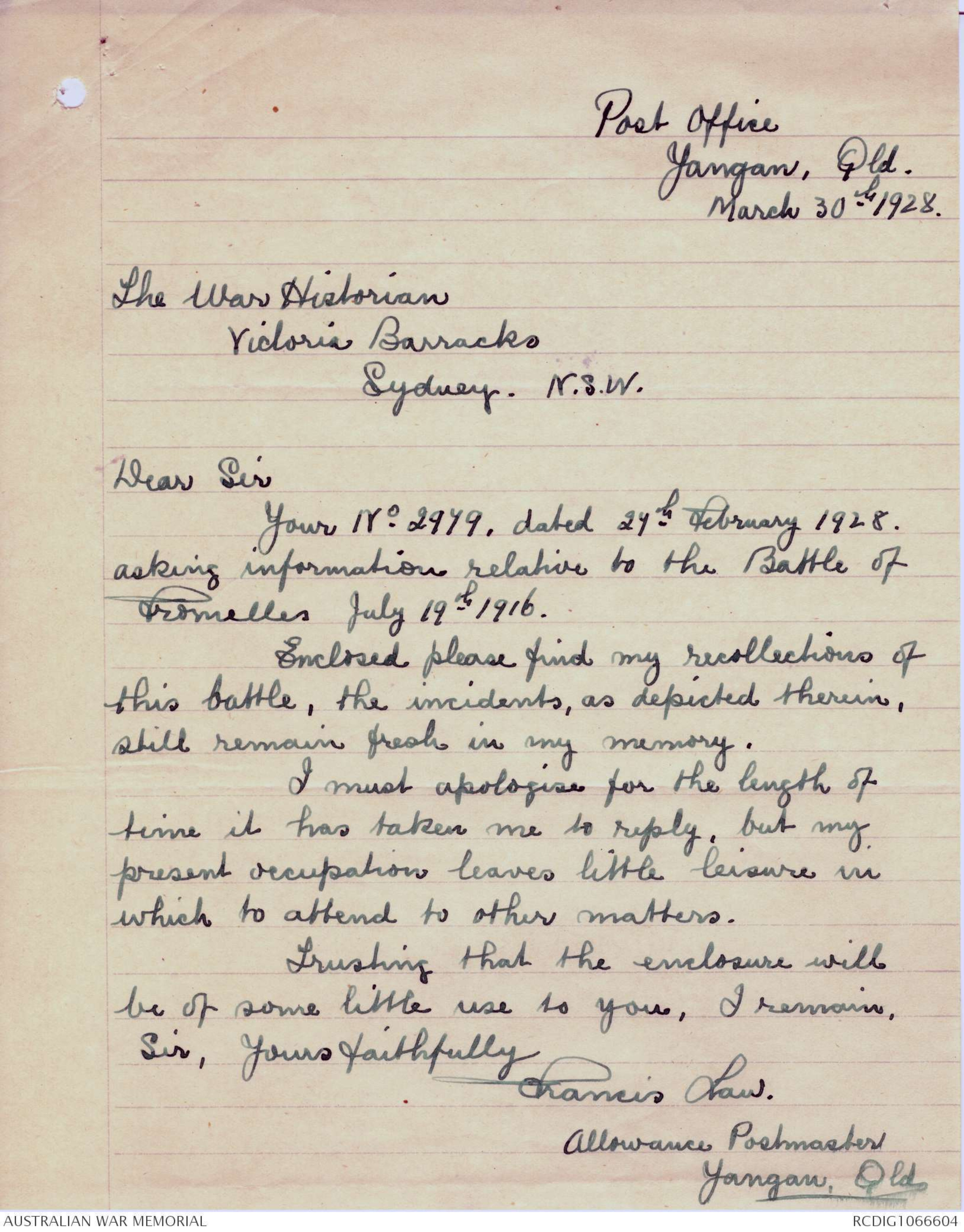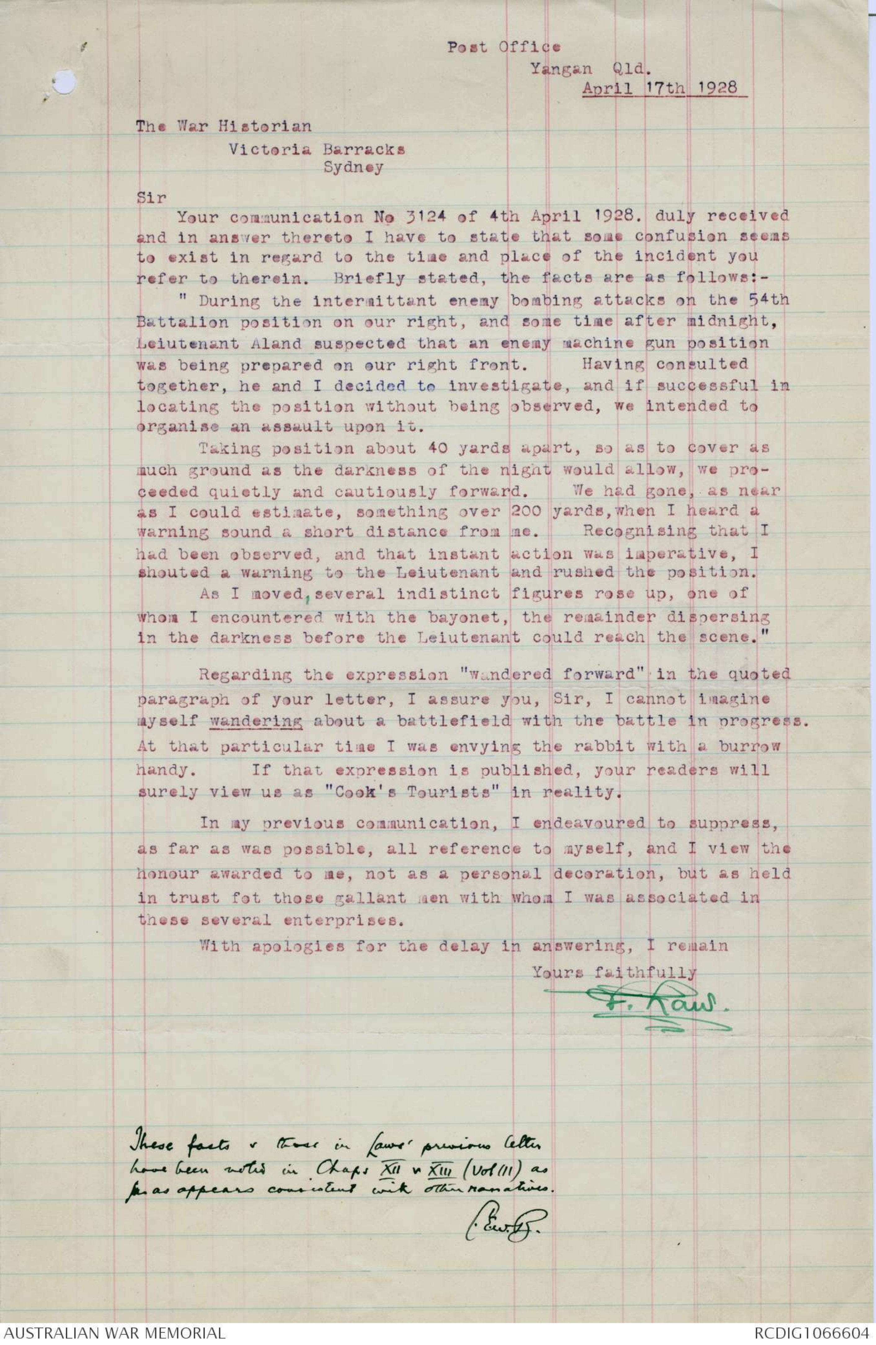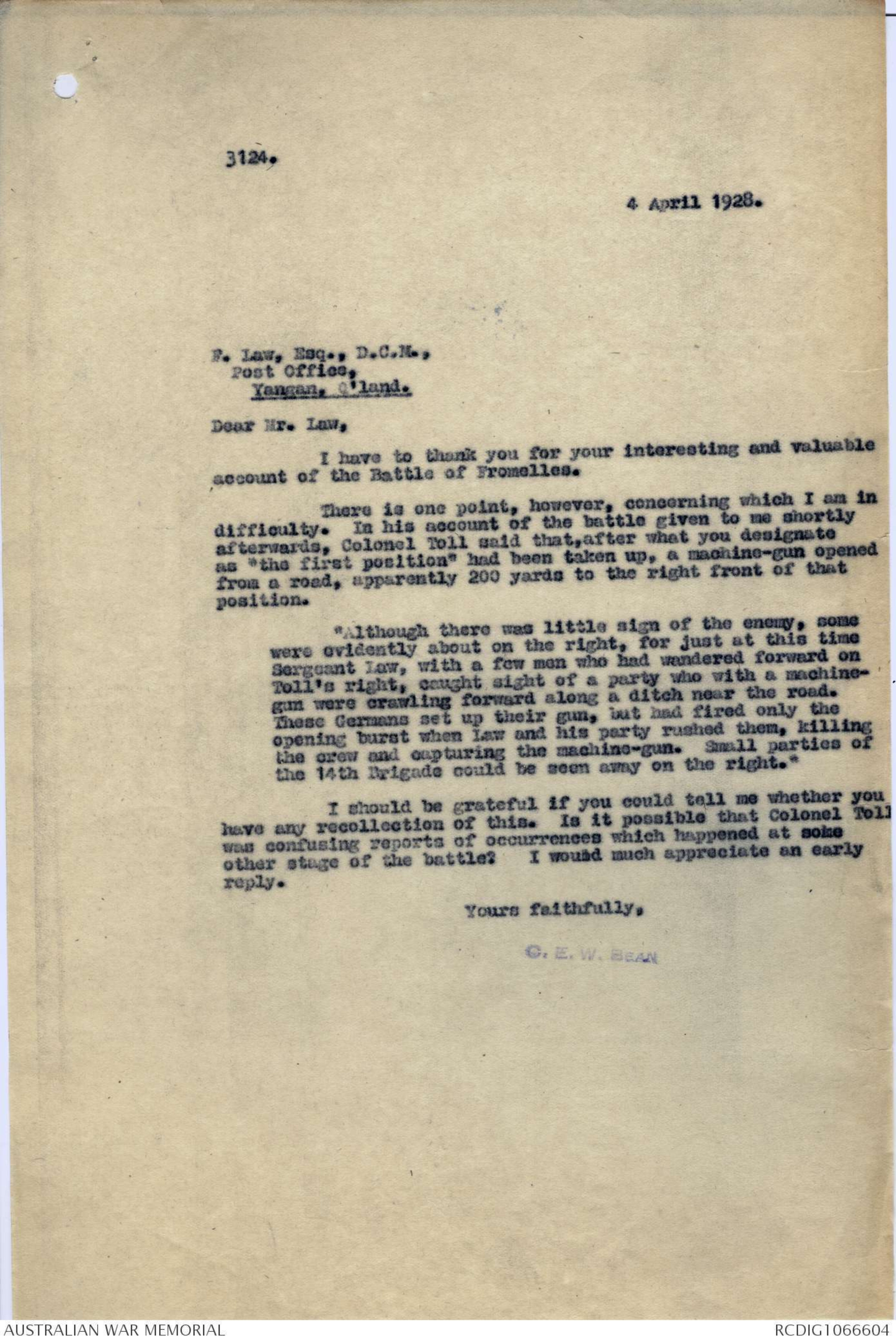 Your communication No 3124 of 4th April 1928, duly received