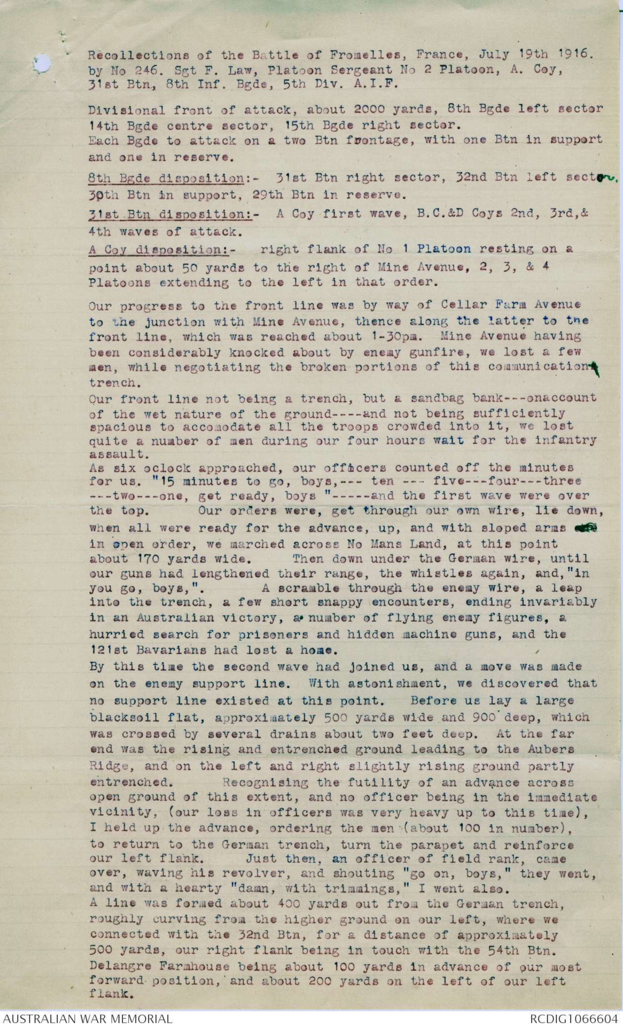 by No 246. Sgt F. Law, Platoon Sergeant No 2 Platoon, A. Coy,