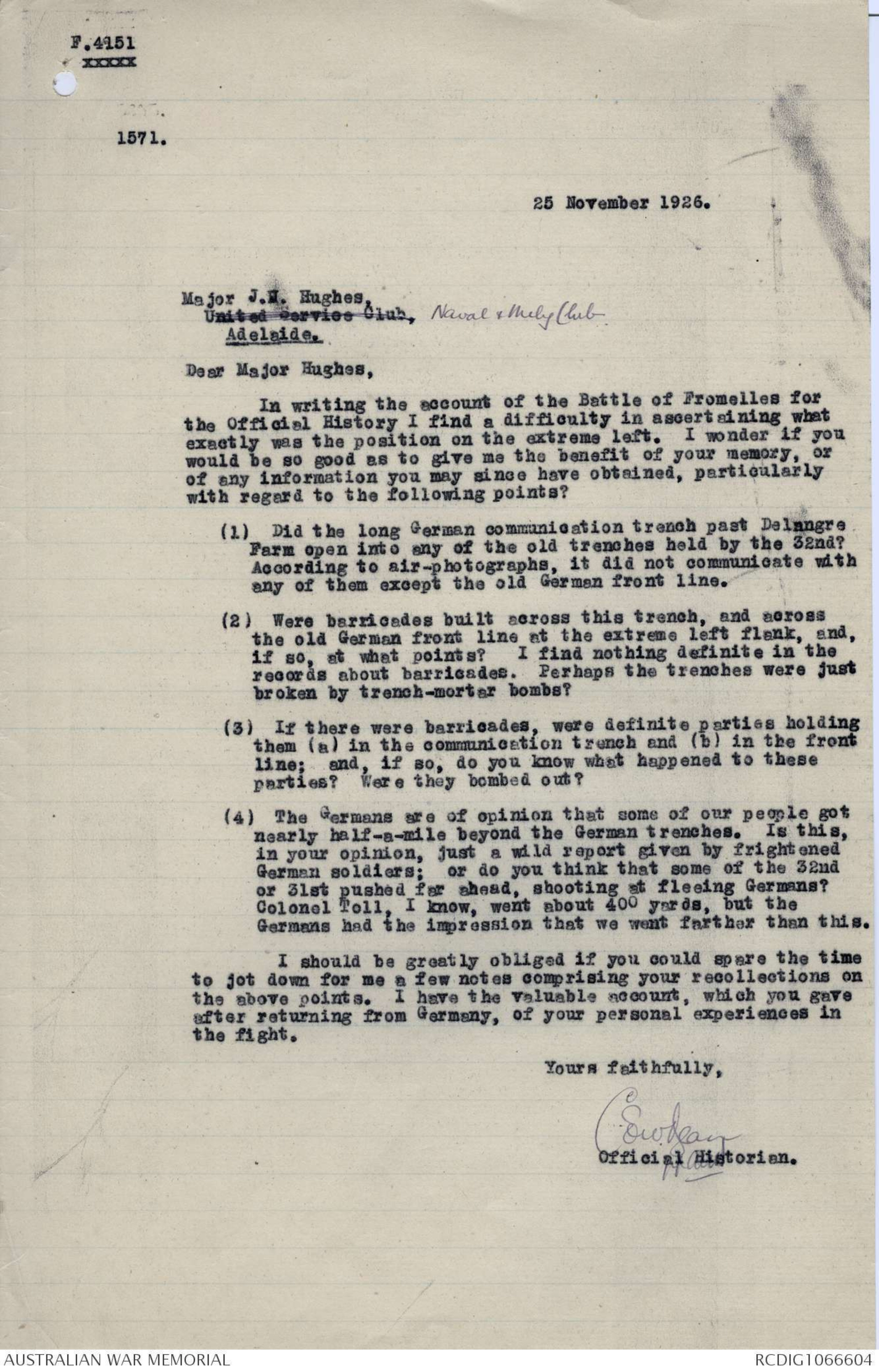 Major J.H. Hughes,United Services Club Naval & Mily Club